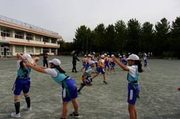 アルカス熊谷のみなさんがタグラグビーを教えてくださいました。