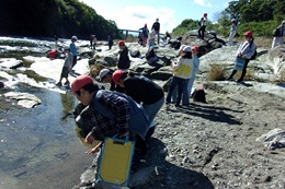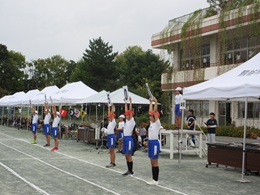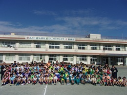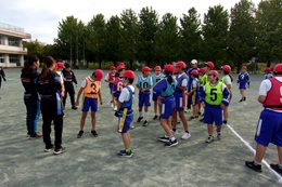 妻沼小、秦小を招いて、長井小の校庭で三校合同親善タグラグビー大会を開きました。