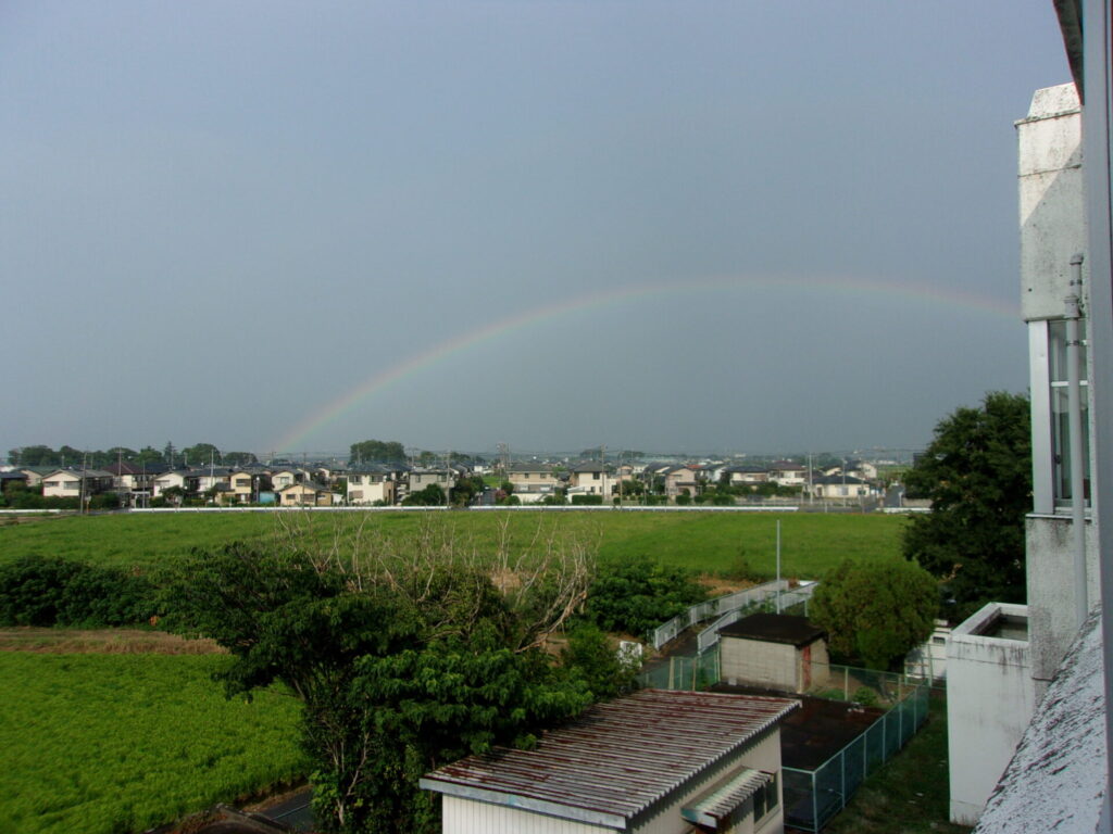 外を見ると虹がかかっていました。